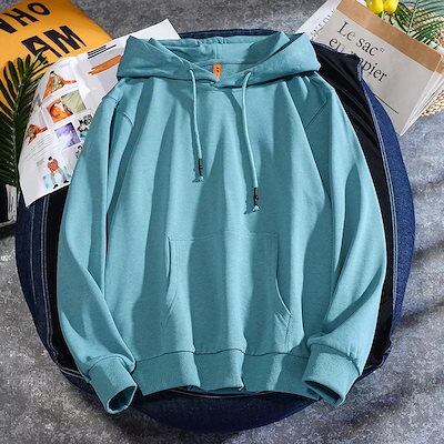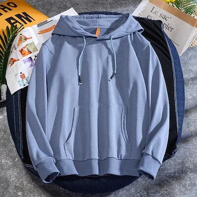 レイヤードトップス長袖ブラウス?無地スウェットメンズレディース作ゆったりフード付き長袖トップス2025トレンドはビッグロゴ!