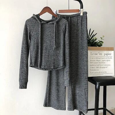 初秋 二点セット パーカー 体型カバー ワイドパンツ 運動 ロングパンツ 着痩せ アウター セットアップ スウェット ロンT トレーナー ジャケット スウェットセットアップ レディース スウエット
