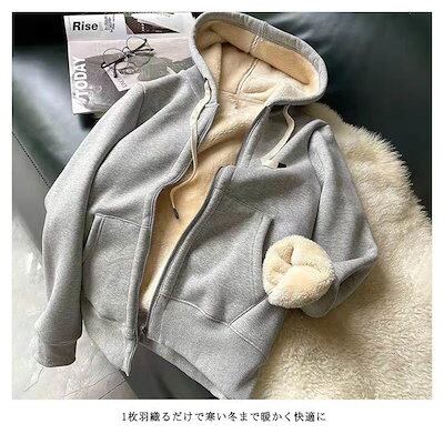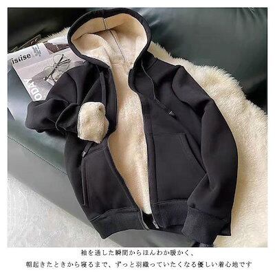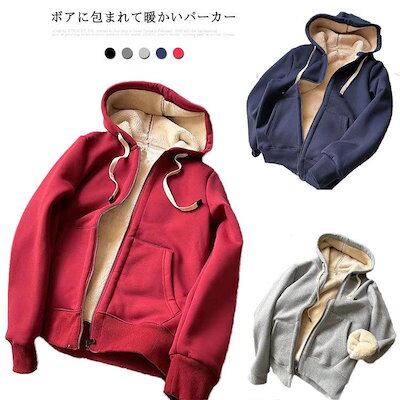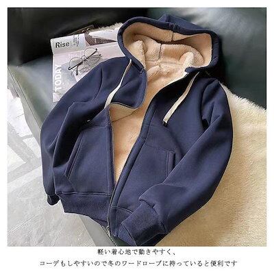パーカー レディース メンズ 長袖 裏ボア 裏起毛 アウター ジップアップ 無地 ライトアウター フード付き スウェット 暖かい 厚手 ボアパーカー トップス コット