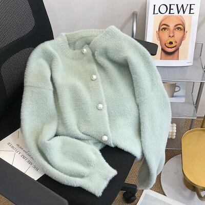 韓国ファッション ニットカーディガン ボタン 長袖 トップス レディース パーカー 通勤 流行り 中綿コート アウター ウォーム スウェット