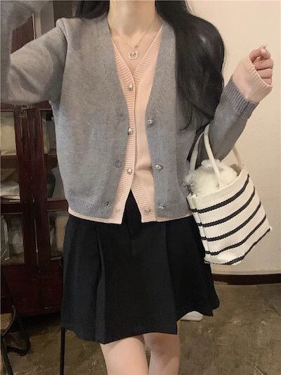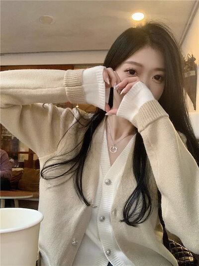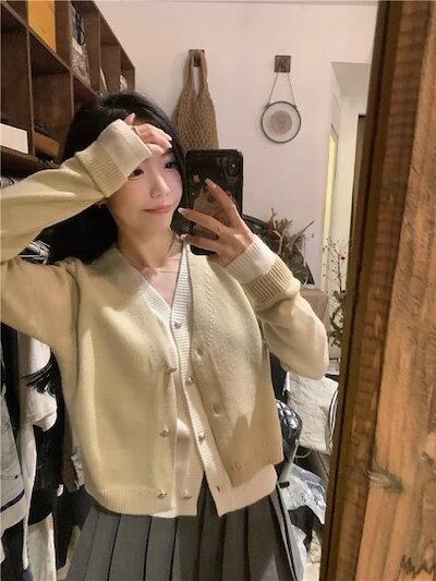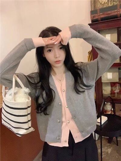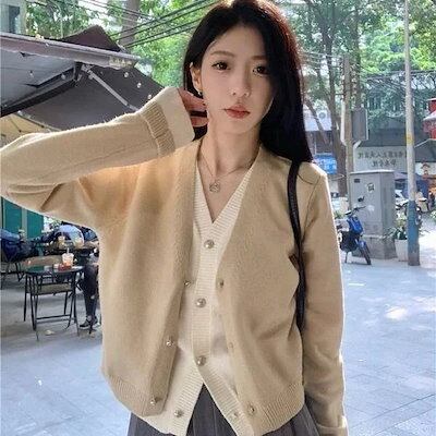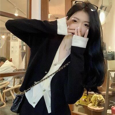 【人気商品】スウェット カーディガン ニット ジャケット フェイクレイヤード ブラウス レディース トップス 百掛け アウター 長袖