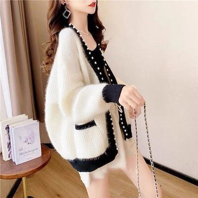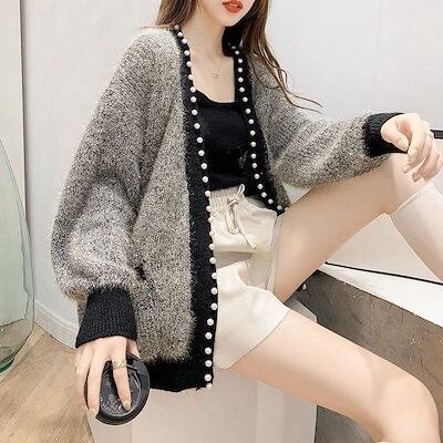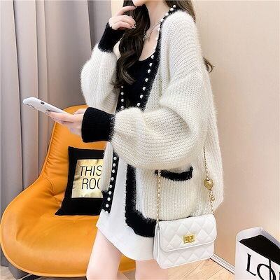 スウェット ニット カーディガン ジャケット 編み込み 長袖 レディース 百掛け 体型カバー 保温 アウターウェア アウター セーター