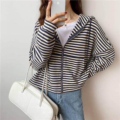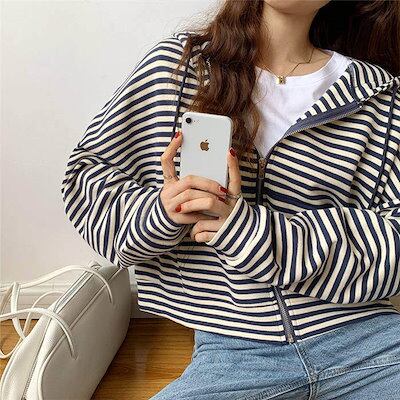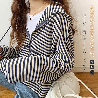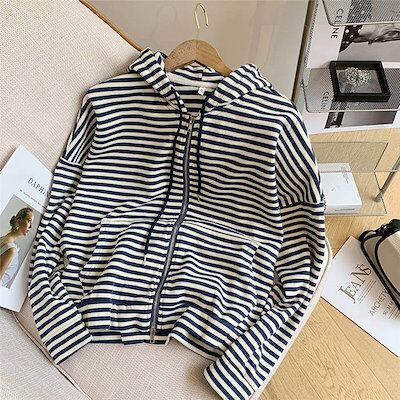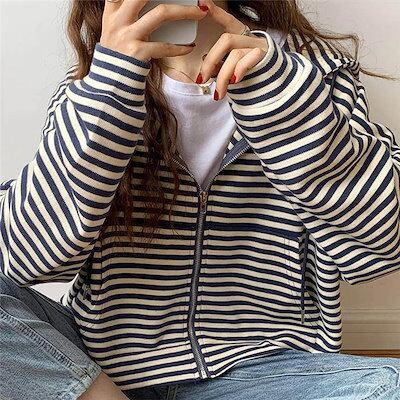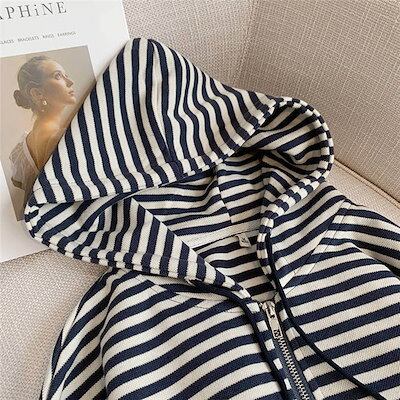 パーカー レディース 秋 ジッパー スウェット カーディガン トレーナー 春 秋 おしゃれ 春物 トップス はおり 長袖 羽織り フードパーカー ライトアウター ジップアップ ボーダー フード付き シ
