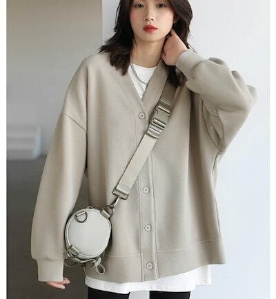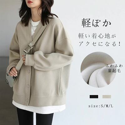 スウェット カーディガン きれいめ 秋 冬 トレーナー 裏起毛 女の子 ゆったり パーカー レディース 暖かい 裏フリース オーバーサイズ アウター ショート丈 Vネック 重ね着 スウェットパーカー