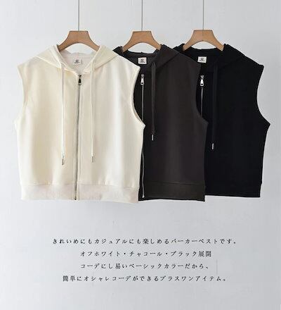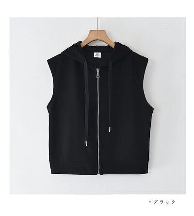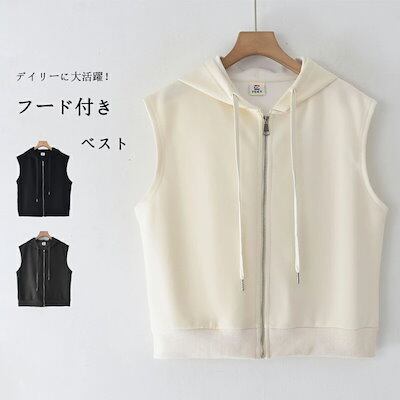 ベスト レディース 秋冬 前開き スウェット ジャケット ノースリーブ フード付き パーカー カジュアル 綿混 ジップアップ ライトアウター 重ね着 ジップパーカー ブルゾン レイヤード スウェットベ