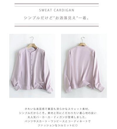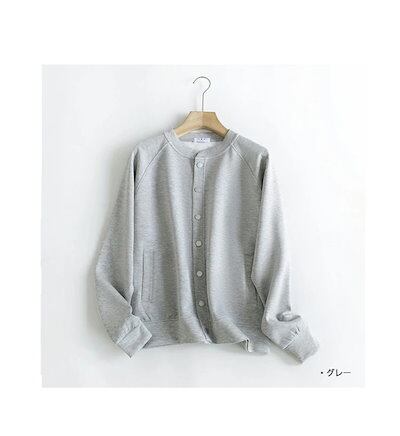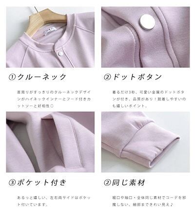スウェット ジャケット ノーカラー レディース 秋冬 前開き パーカー ショート丈 ふんわり 柔らか コットン アウター 長袖 ポケット ドットボタン 羽織り ショート丈ジャケット カジュアル 無地