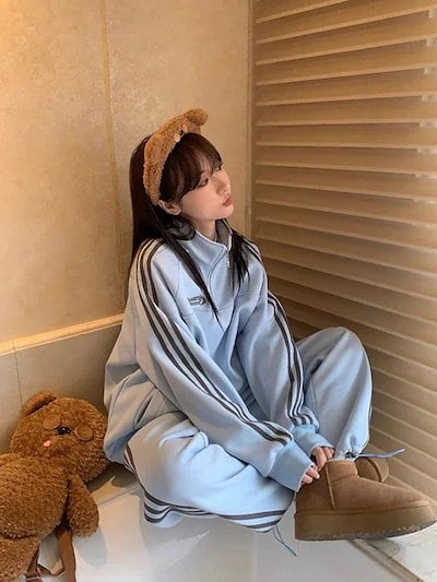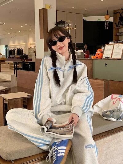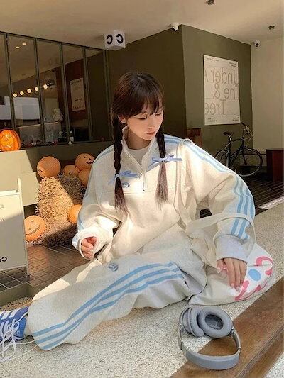 メガ割 24 韓国 かわいい 2点セット 厚手裹起毛レディース 長袖アウターレトロ黑白上下ハーフサイズ丈トップスカジュアルスポーツファッション系通学学生袖お出かけアップシルエットサイドトラック羽織8雨