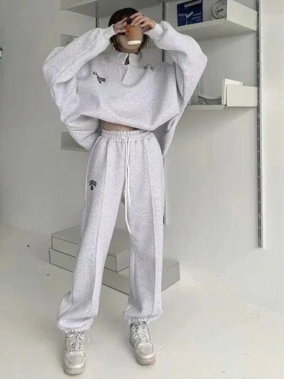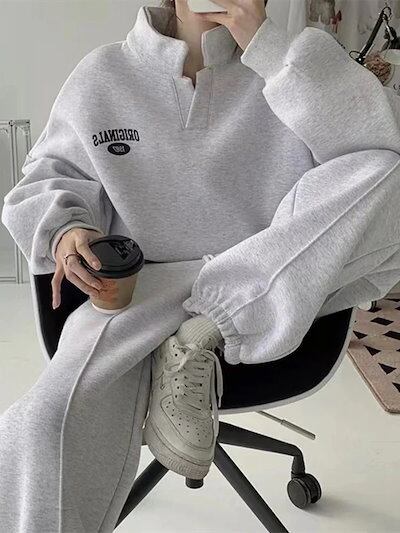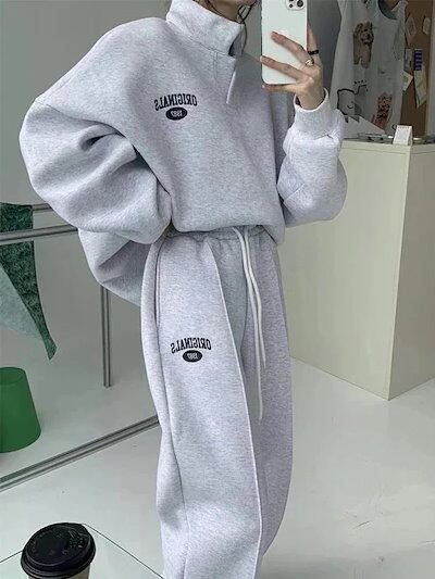 23ブランドスウェットセットアップ上下二点長袖立ち襟アウター無地スウェットパンツ韓国ファッションレディーストレーニングウェア レディーススポーツウェアレディース