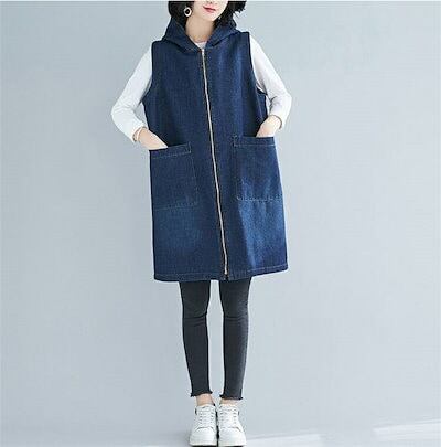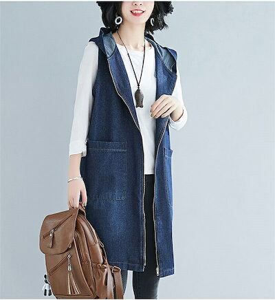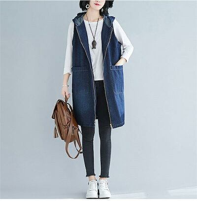 【2点購入25O円OFF】ベスト レディース 前開き ノースリーブ ロングジレ トレンチベスト 春 秋 デニム ジップアップ ポケット 無地 ジレンチ トップス アウター コート ロングベスト レデ