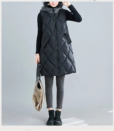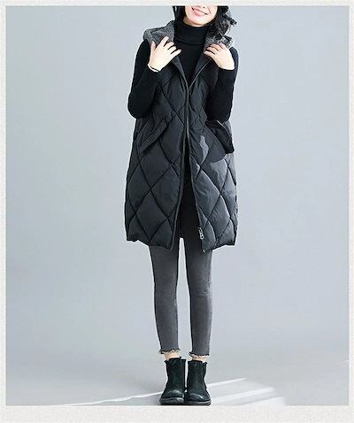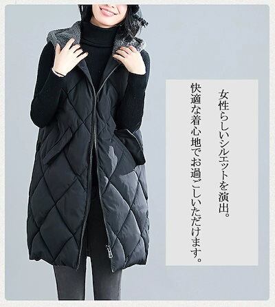【2点購入25O円OFF】ベスト 秋冬 レディース アウター ロングベスト 中綿ベスト 前開き ジレ コート ジャケット キルティング キルティングコート ノースリーブ 羽織 フード 中綿 フードベ