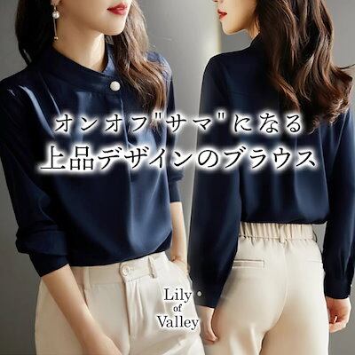 1つボタン シンプル ブラウス トップス 長袖 事務服 きれいめ 上品 清楚 フォーマル 無地 / レディース ハイネック シャツ 大きいサイズ カジュアル 大人可愛い オフィス オフィスカジュアル