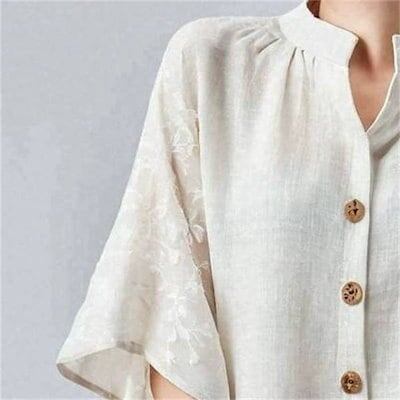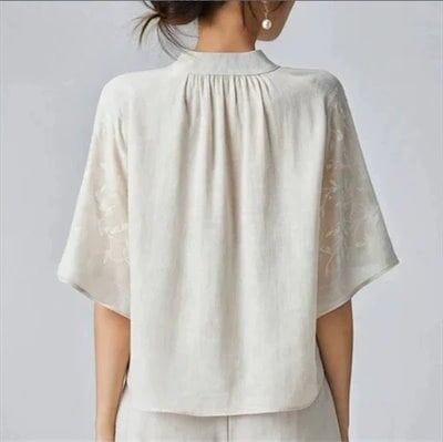 【限?折扣】ブラウス レディーストップス の新作 クルーネック フロントボタン 五分袖 トップス 可愛い