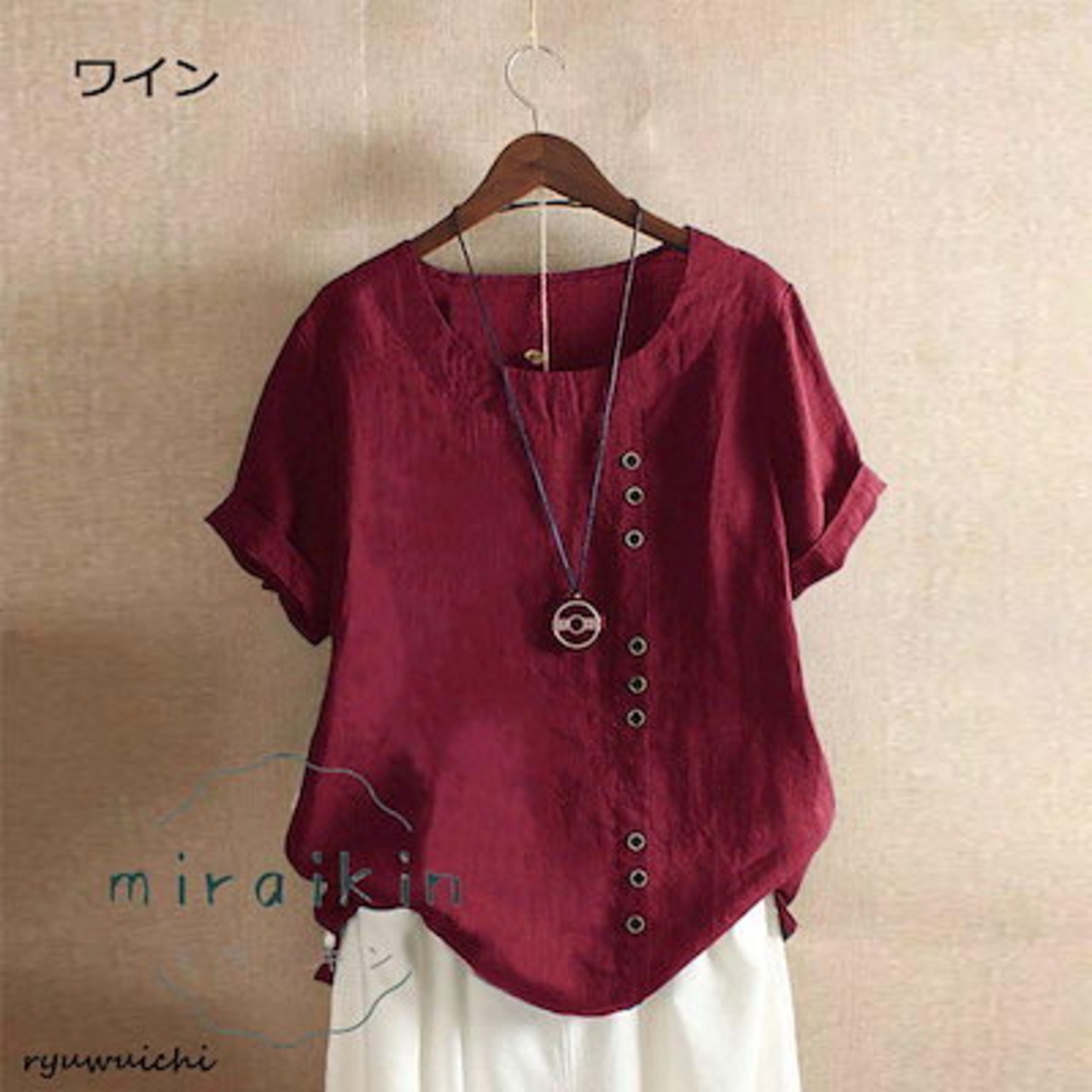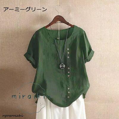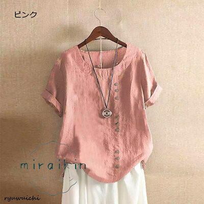 シャツ ブラウス レディース 半袖 無地 40代 トップス 夏 ボタン飾り 体型カバー ゆったり 大きいサイズ 20代 チュニック 20代30代40代50代シャツ ブラウス レ