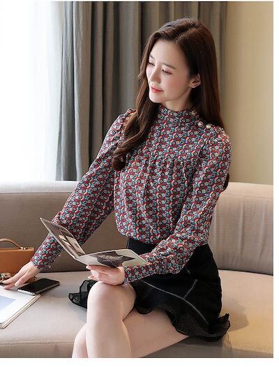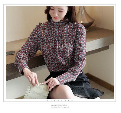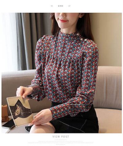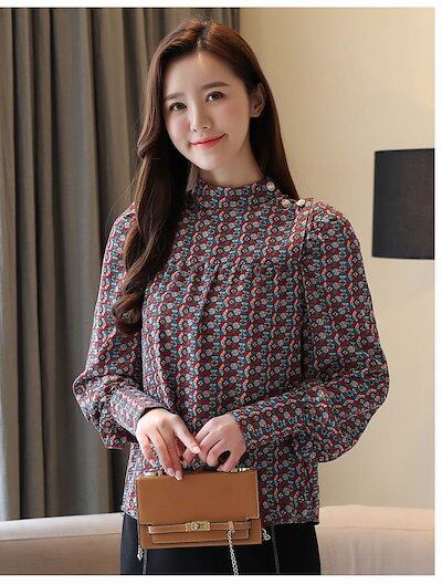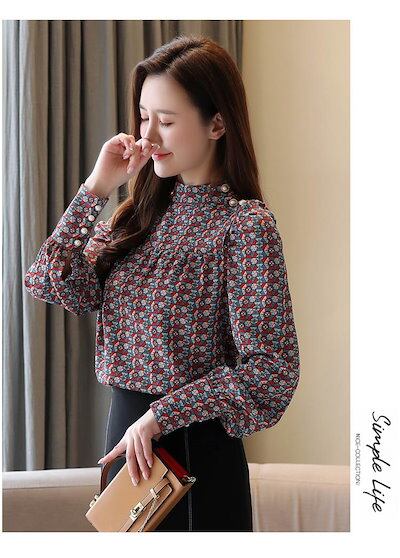 お得セットブラウス 柄 シャツ レディース シフォン レトロ ガーリー 小花柄 きれいめカッコイイ 柄 キュート 大人可愛い 個性的 長袖 トップス フォーマル コーデ スタンドカラー パールボタン