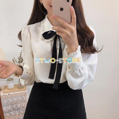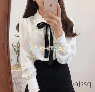 無料出荷(Timesales)3有りレディースブラウス長袖シフォンブラウスフリルリボンボウタイ金ボタン白ホワイトオフィスカジュアルフェミニン上品エレガントかわいい