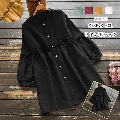 フ バールン袖 とろみ ドロップショルダ ドルマンスリーブ ノーカラー 長袖チュニック 大きいサイズ 麻 綿 長袖 ロングシャツ シャツブラウス ボタン 春物 ブラウス チュニック レディース シャツ