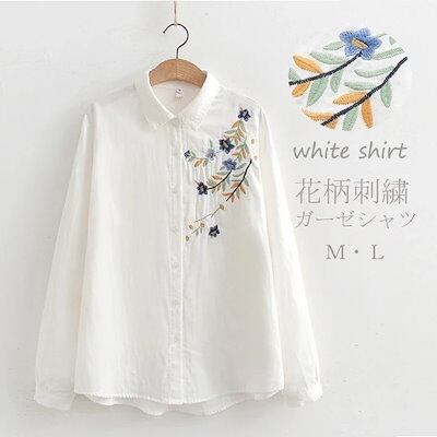 カットソ 長そで ガーゼシャツ お洒落 花柄 ボタン留め 無地 シャツブラウス トップス ブラウス 通勤シャツ コットン 白シャツ 春 ガーゼ 長袖 レディース ホワイトシャツ 綿シャツ 刺繍 シャツ