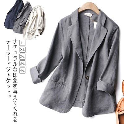 テーラードジャケット レディース リネン風 ジャケット 薄手 春 夏 秋 アウター ビジネス 七分袖 UVカット 冷房対策 スリム サマージャケット 綿麻風 ブレザー スーツジャケット オフィス 通勤