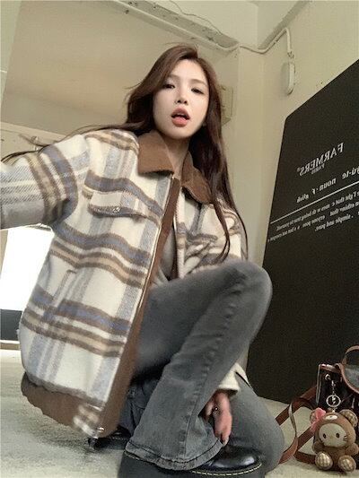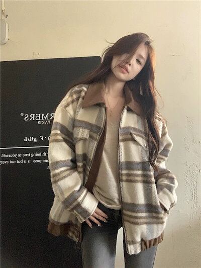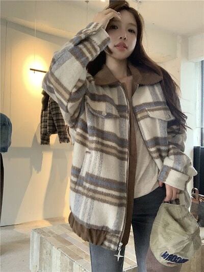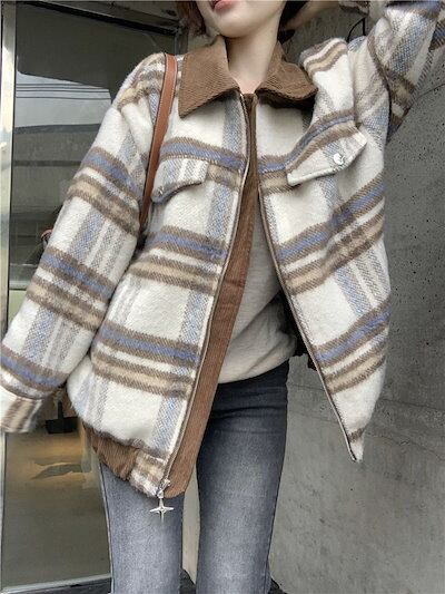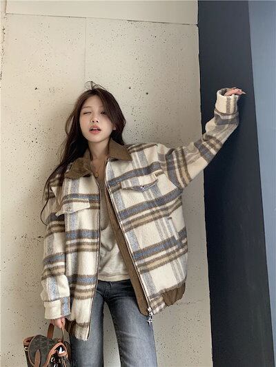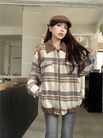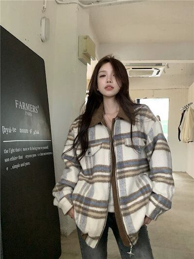 ジャケット レディース ノーカラージャケット 韓国 ジャケット ロングジャケット 秋服 レディース ツイードチェックジャケット 高度なセンス 秋冬新作 とろみコート アメリカンレトロジャ
