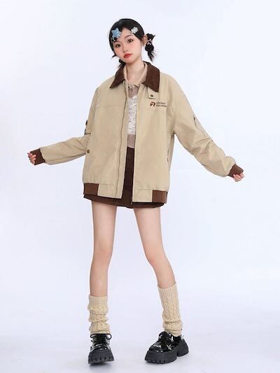 ジャケット レディース ノーカラージャケット 韓国 ジャケット ロングジャケット 秋服 レディース アメリカンレトロラペル防水ウィンドブレーカージャケット 2024 春秋新作ルーズカジュ