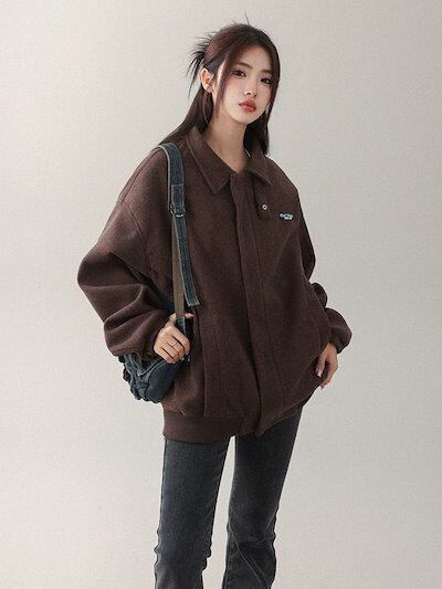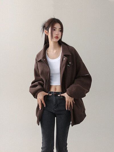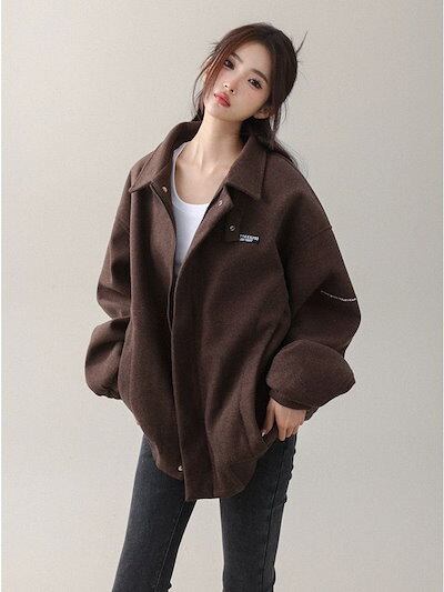 ジャケット レディース ノーカラージャケット 韓国 ジャケット ロングジャケット 秋服 レディース 春秋ヴィンテージデザインヘビーウェイトツイードジャケットコート アメリカンルーズカジュ