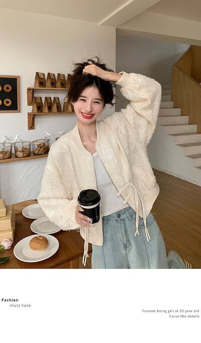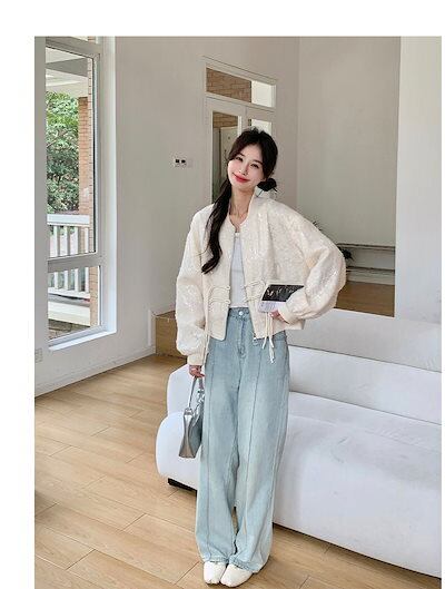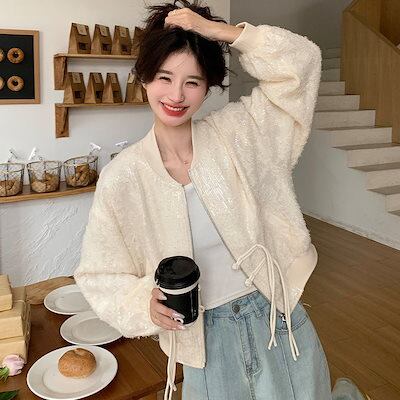 ジャケット レディース ノーカラージャケット 韓国 ジャケット ロングジャケット 秋服 レディース ジャケット 2024年春秋新作 ベースボールジャケット