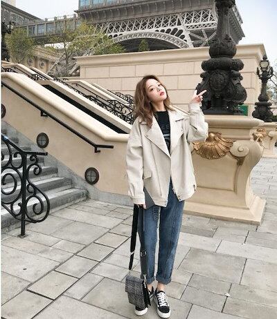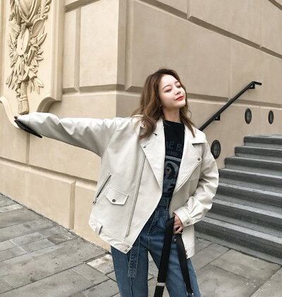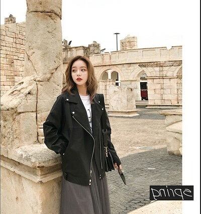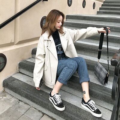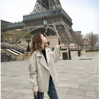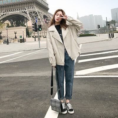 レザージャケット 2024年新作 ルーズなバイカー・レザージャケットの春秋韓国版 ジャケット レディース ノーカラージャケット 韓国 ジャケット ロングジャケット 秋服 レディース