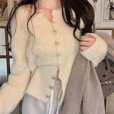 ニットカーディガン ラウンドネック ジャンパー カーディガン レディース 流行りVネックベー秋 ゆったり 薄手 コート着痩せニットセーター日系秋アウター