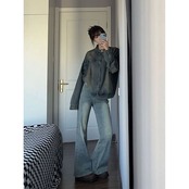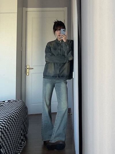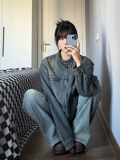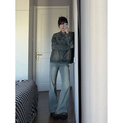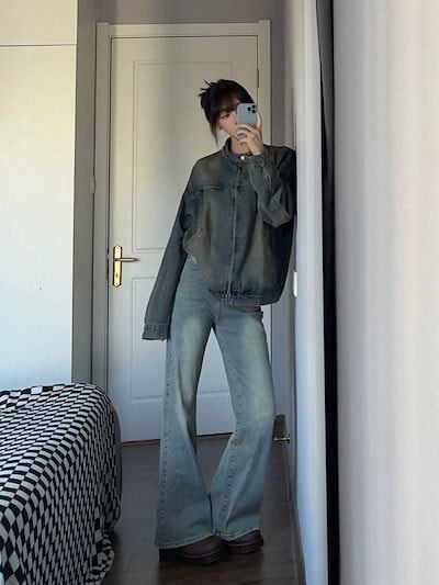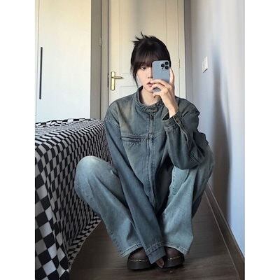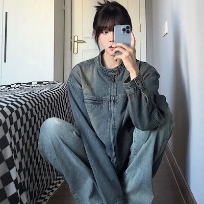 アメリカンストリートデニムジャケット 秋の新作 トレンド ジャケットトップ ジャケット レディース ノーカラージャケット 韓国 ジャケット ロングジャケット 秋服 レディース