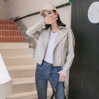 人气新作韓国ファッション韓国ファッション 流行りトップスショット丈 革ジャンレディース 着痩せ 秋ジャケットライダース 春秋 女性 おしゃれ ショット丈 着痩せ 皮ジャンパー冬アウター