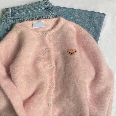 ピンク 優しい風 ソフトベア刺繍 ジャンパー トップス カーディガン レディース アウター ニットカーディガン