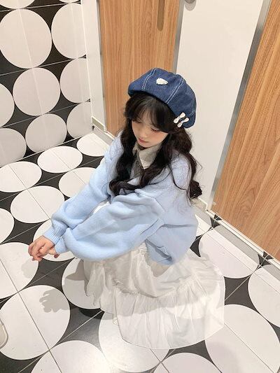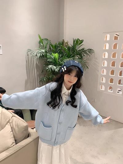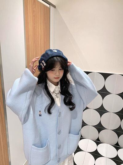 新作刺繍Vネックニットカーディガン コート春新作 韓国製ルーズ・ジャンパー カーディガン レディース アウター ニットカーディガン