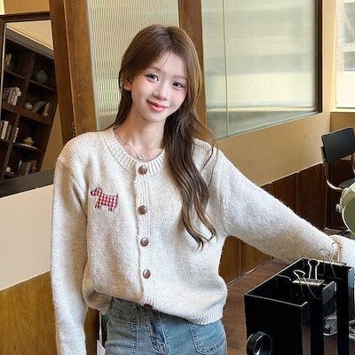 カーディガン レディース アウター ニットカーディガン パピーワッペン キャンディーカラー スウィートカーディガン ジャンパー スプリングコート