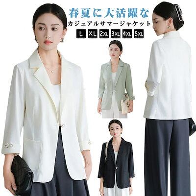 ジャケット レディース 春 夏 サマージャケット 七分袖 テーラードジャケット 薄手 カジュアル サマー スーツ ジャケット 上品 シンプル 黒 白 ブラック ホワイト フォーマル オフィス OL 通