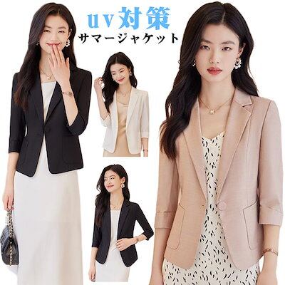 テーラードジャケット サマージャケット 七分袖ジャケット レディース スリム 半袖 ジャケット uv対策 薄手 夏服 襟付き アウター カジュアル ライトアウター シャツジャケット ゆったり フォーマ