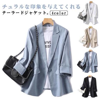テーラードジャケット レディース サマージャケット 夏ジャケット 薄手 テーラードジャケット 七分袖 ジャケット ライトアウター 春 夏 カジュアル きれいめ 人気 アウター 通勤 オフィス スーツ