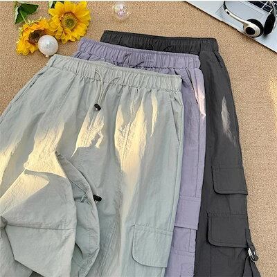 カーゴパンツ レディース 夏 薄手 ワークパンツ チノパンツ 動きやすい 低身長 ストリート スポーツウエア イージーパンツ ズボン ボトムス hiphop 大人 無地 ポケット リラックス ゆったり