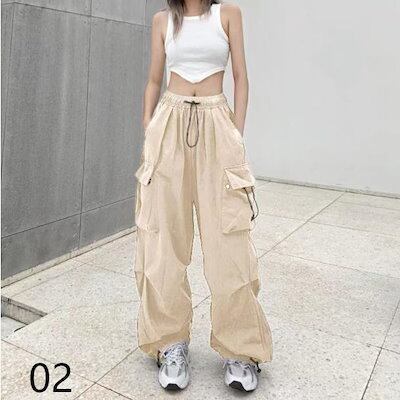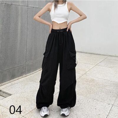カーゴパンツ ワイドパンツ ヒップホップ 運動パンツ ストレート レディース 黒 白 ズボン ダンスウェア ステージ 公演服 カジュアル ゆったり ストリート風