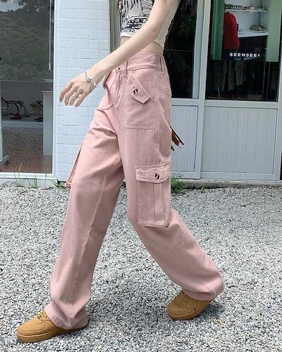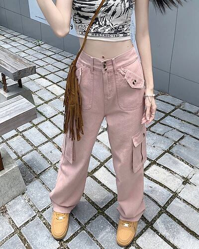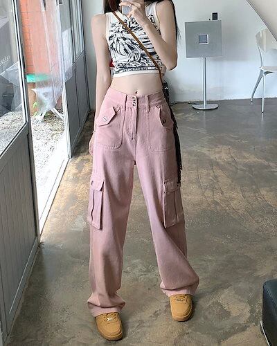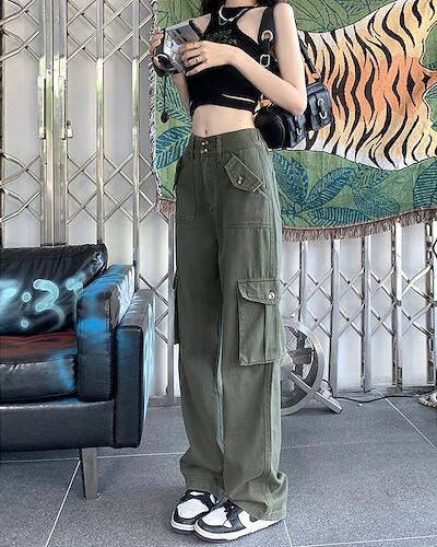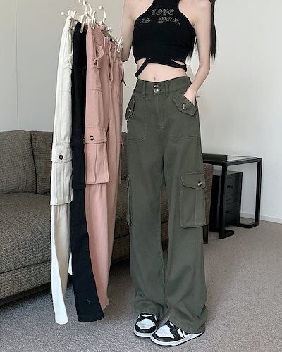【急速出荷!】マルチポケット オーバーオール レディース シンプルハイウエストストレートワイドレッグパンツズボン 無地 襟無 冬ファッション おとなっぽい