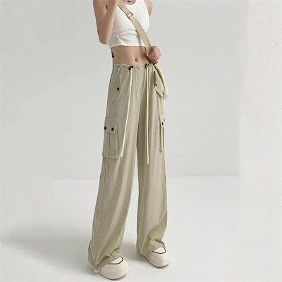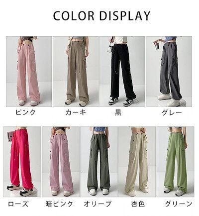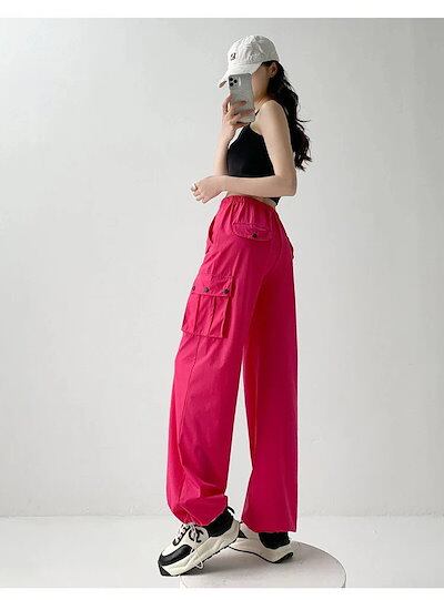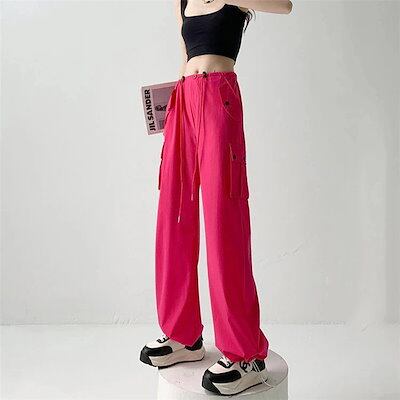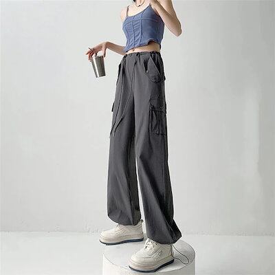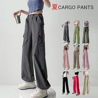 【急速出荷!】カーゴパンツ レディース ゴムウエスト ゆるめ ズボン ボトムス かわいい かっこいい ロング丈 カーゴ ワークパンツ 動きやすい スポーツ ハイウエスト 薄手
