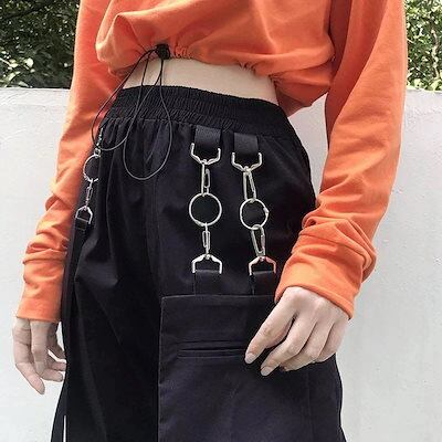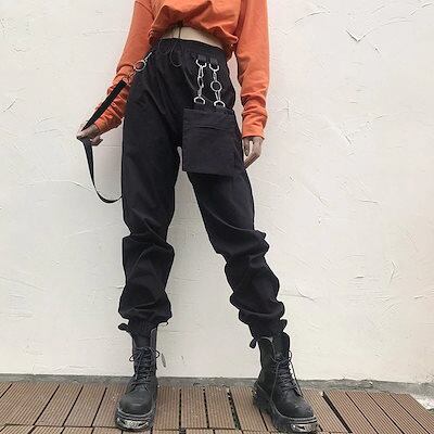 Qoo102色 レッド カーゴパンツ ロングパンツ レディース ヒップホップ ダンス カジュアル ハイウエスト63