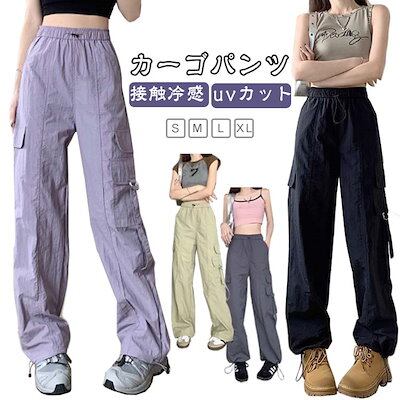 カーゴパンツ レディース ロングパンツ ワイドカーゴパンツ ポケット付き ハイウエスト ゆったり ワイドパンツ 長ズボン ワークパンツ ヒップホップ ダンス用 かっこいい ボトムス 春 夏 ドローコー