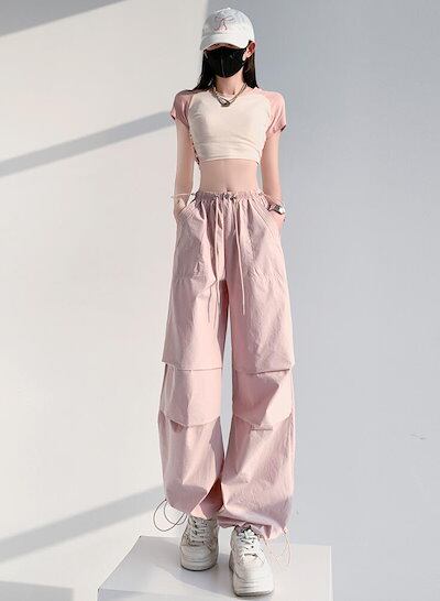 チノパンツ ワイドパンツ ワイド レディース チノパン カーゴパンツ バギーパンツ パンツ ロングパンツ ウエストゴム ズボン 長ズボン ボトムス 大きサイズ 着痩せ 楽ちん 春 夏 S M L 2