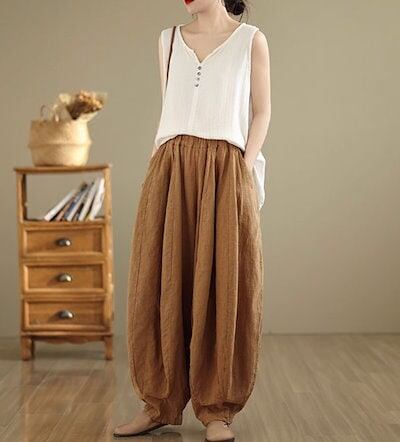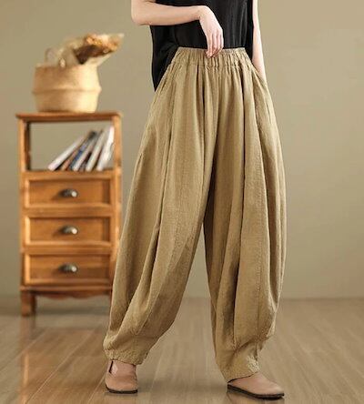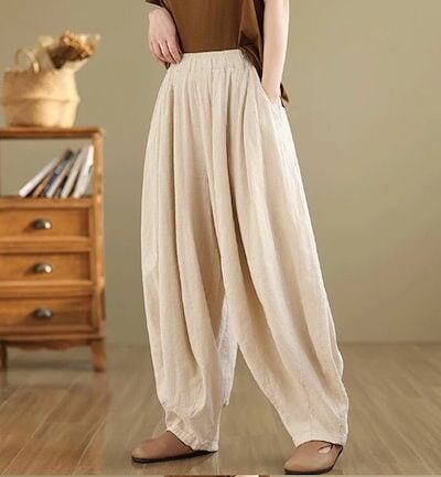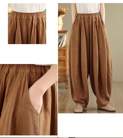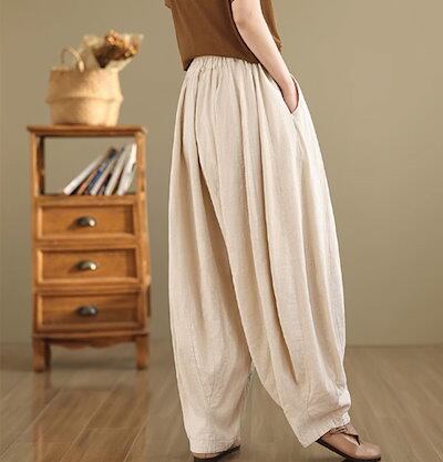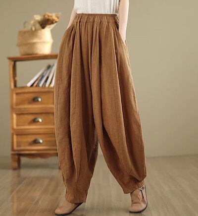 リネン パンツ レディース ハーレムパンツ 涼しい 綿麻パンツ バルーンパンツ カーゴパンツ サルエルパンツ 綿麻 イージーパンツ リネン コットン ワイドパンツ 体型カバー ズボン ゆったり リラッ