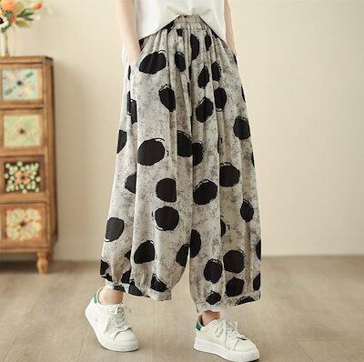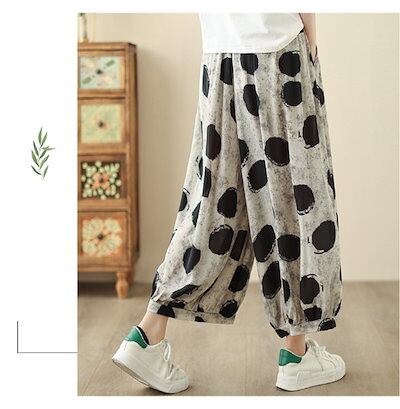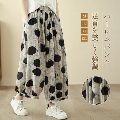 カーゴパンツ レディース 接触冷感 ひんやり ドット柄 水玉 ワイドパンツ ロング 大きいサイズ ワイド バルーンパンツ 春 春夏 涼しげ シンプル きれいめ ナチュラル カジュアル 肌触りよい ロン