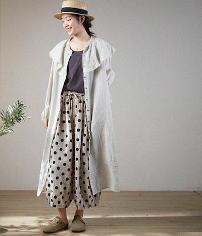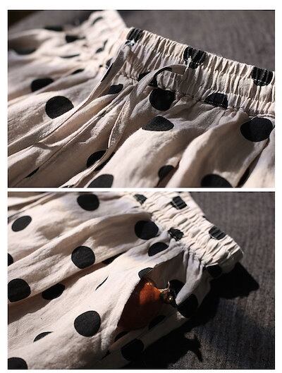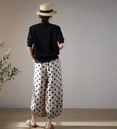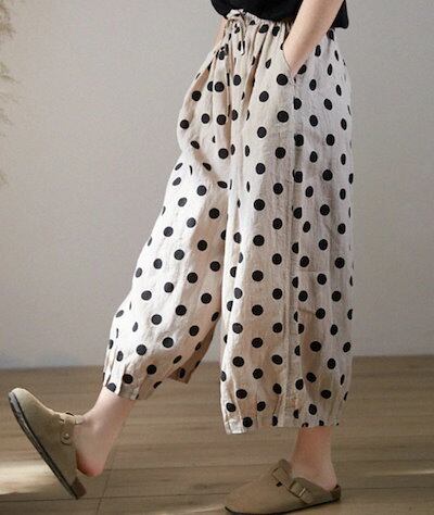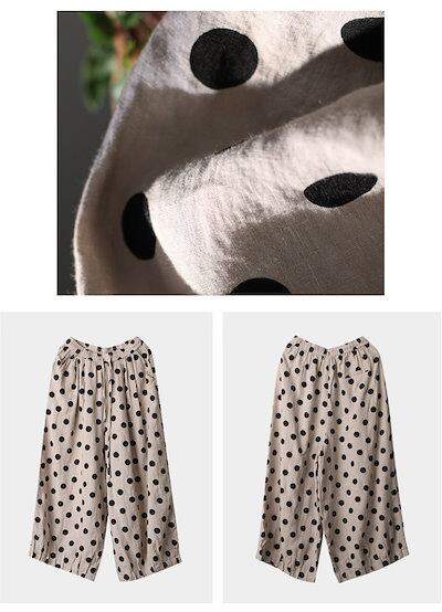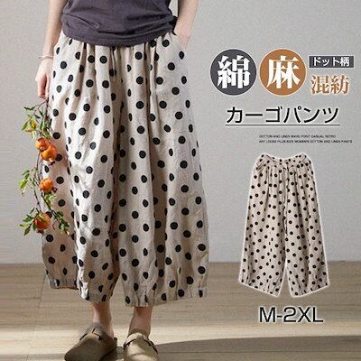 カーゴパンツ レディース ドット柄 水玉 ワイドパンツ ロング 麻 リネン 大きいサイズ ワイド バルーンパンツ 春 春夏 涼しげ シンプル きれいめ ナチュラル カジュアル 肌触りよい 送料無料 ロ