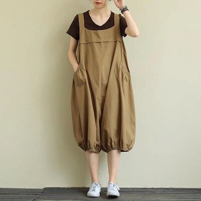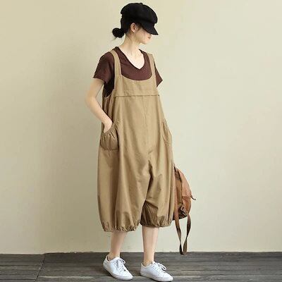 コーデ完成!サロペット 脚見せショートパンツ 若見え オーバーオール ゆったり オールインワンパンツ 大きいサイズ 着痩せ ランタンパンツ ワイドパンツ レディース ズボン カーゴパンツ 半ズボン