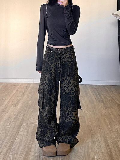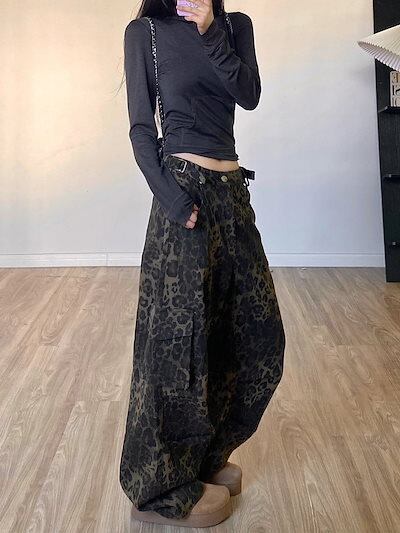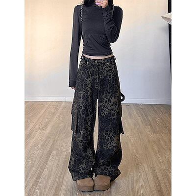 2025春夏 デニムパンツ ロング丈ボトムスハイウエストジーンズ K-POPストリートファッション系韓国風ファッション練習ジーンズ シルエット加工ゆったりレッグレディースカジュアルジーパン衣装