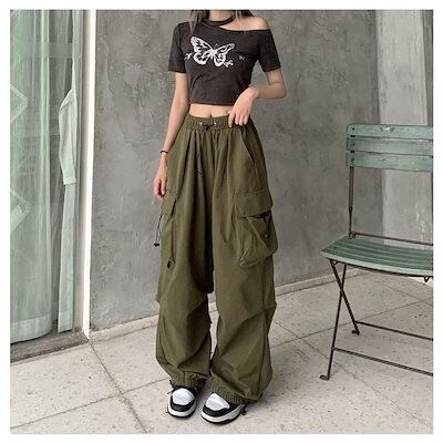 カーゴパンツ レディース ミリタリーパンツ カーゴ レディースパンツ ダンス衣装 カジュアル ウエストゴム 美シルエット ゆったり 体型カバー