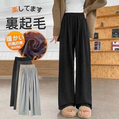 ワイドパンツ ガウチョパンツ レディース コーデュロイ 防寒パンツ 裏起毛 あったか 冬 ウエストゴム ゆったり ズボン 裏ボア